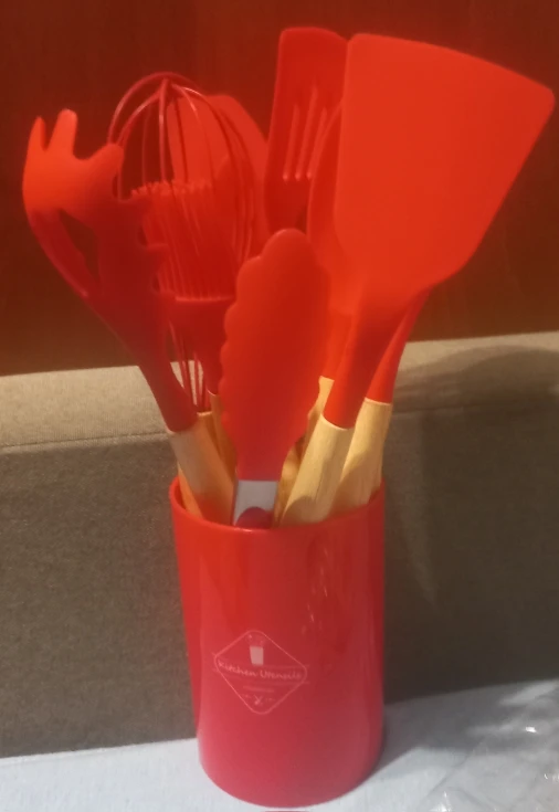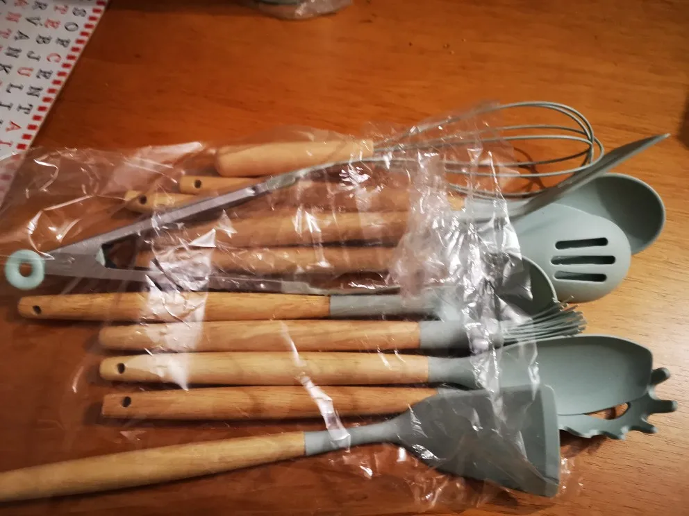 Discover the perfect blend of style and functionality with our Wood Craft Kitchen Set, featuring 12 essential utensils designed to elevate your culinary experience. Crafted with care, each utensil boasts a sturdy wooden handle that offers a comfortable grip and adds a touch of natural elegance to your kitchen decor. The silicone heads are heat-resistant and durable, making them ideal for a wide range of cooking tasks, from flipping pancakes to stirring sauces.